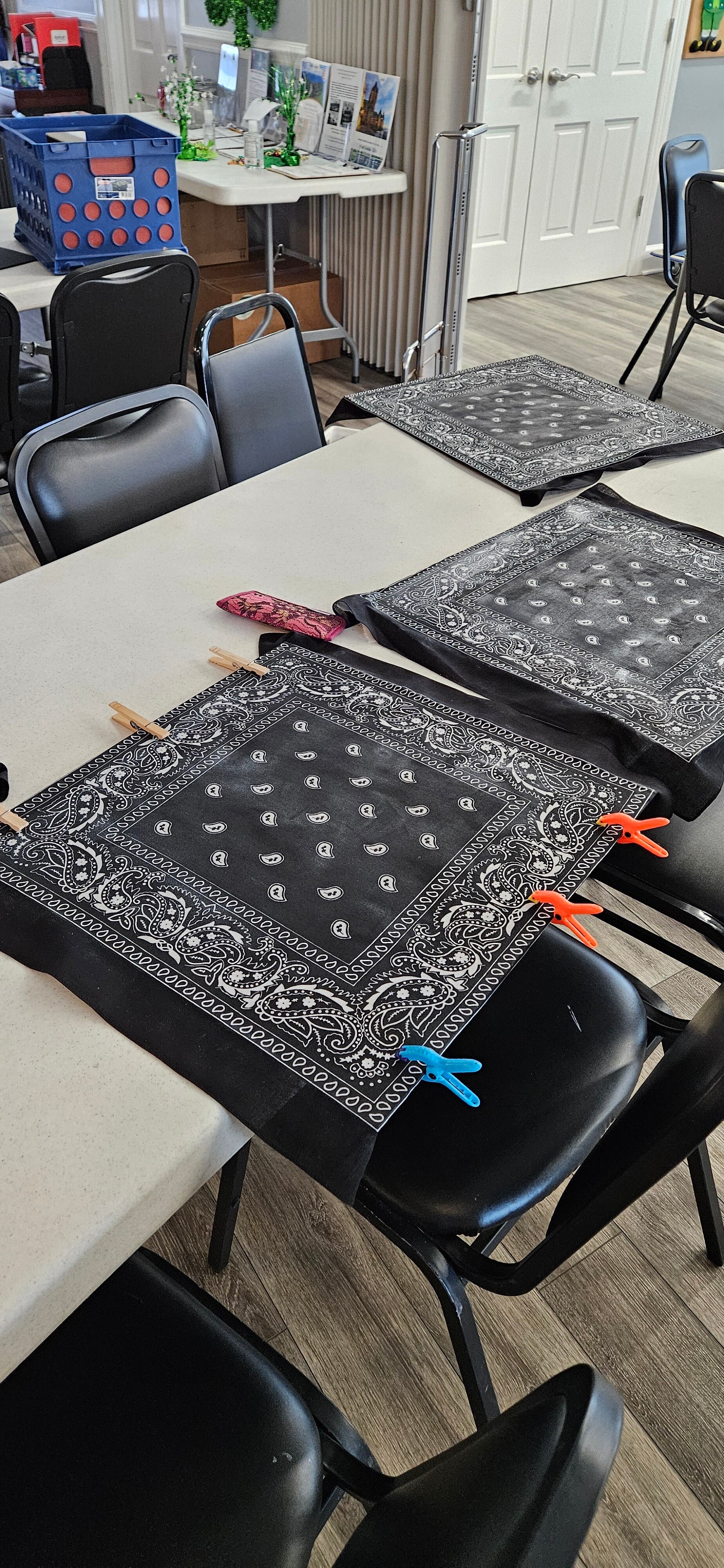 pattern provided. Both board and bandana will be $7.00. Contact Cindy Moore to purchase asap. Another option is a 12” x 12” board or surface of your choice.